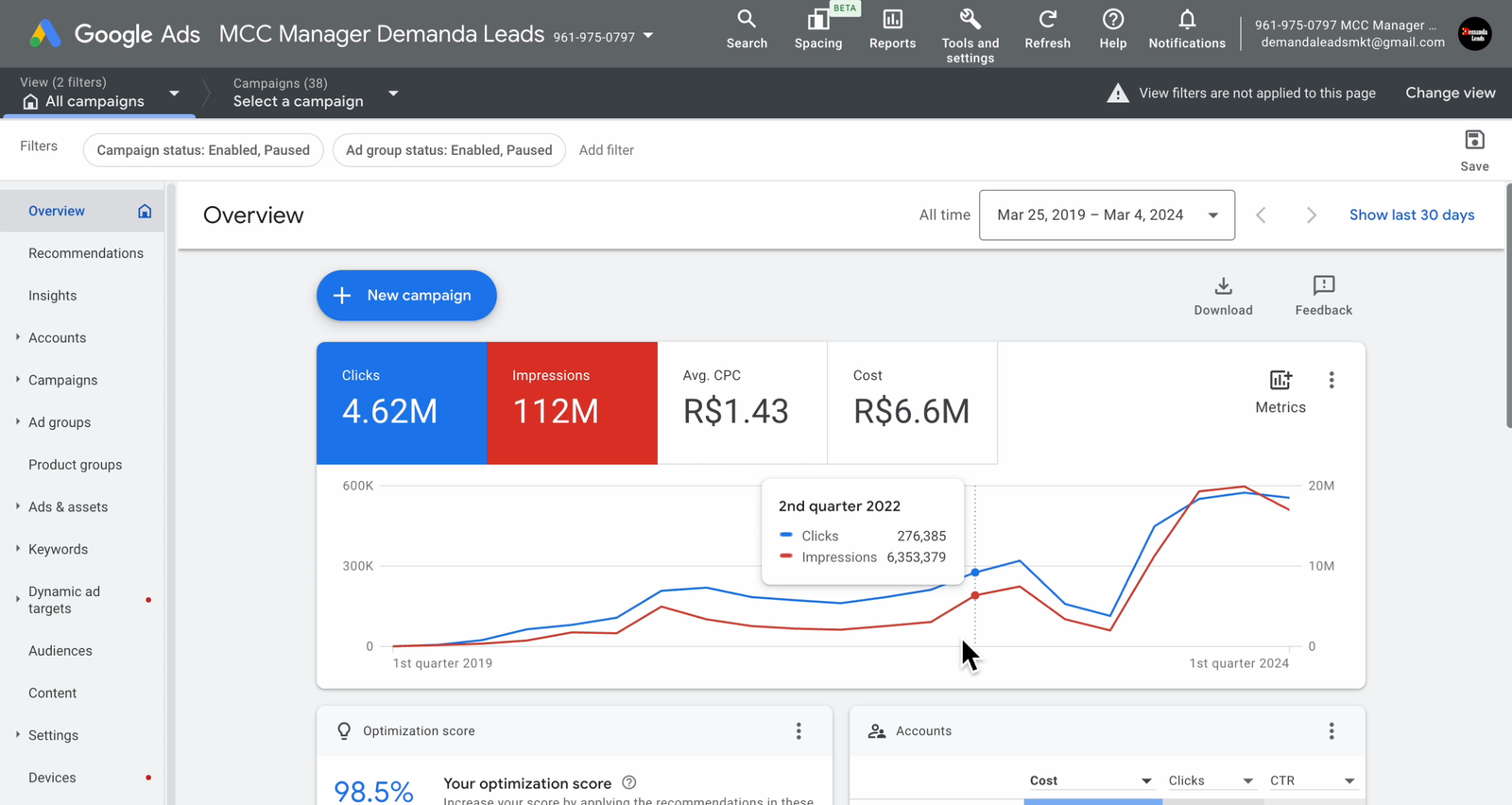 Com mais de 5 bilhões de buscas realizadas diariamente, o Google é o epicentro da descoberta online. Ter presença neste gigante da internet não é apenas importante, é essencial para o sucesso do seu negócio. Através de estratégias de anúncios eficazes no Google Ads, você pode alcançar potenciais clientes no momento exato em que estão procurando pelos seus produtos ou serviços. Com uma audiência altamente segmentável, o Google oferece uma plataforma incomparável para aumentar a visibilidade da sua marca, impulsionar o tráfego para o seu site e, por fim, converter leads em clientes satisfeitos.